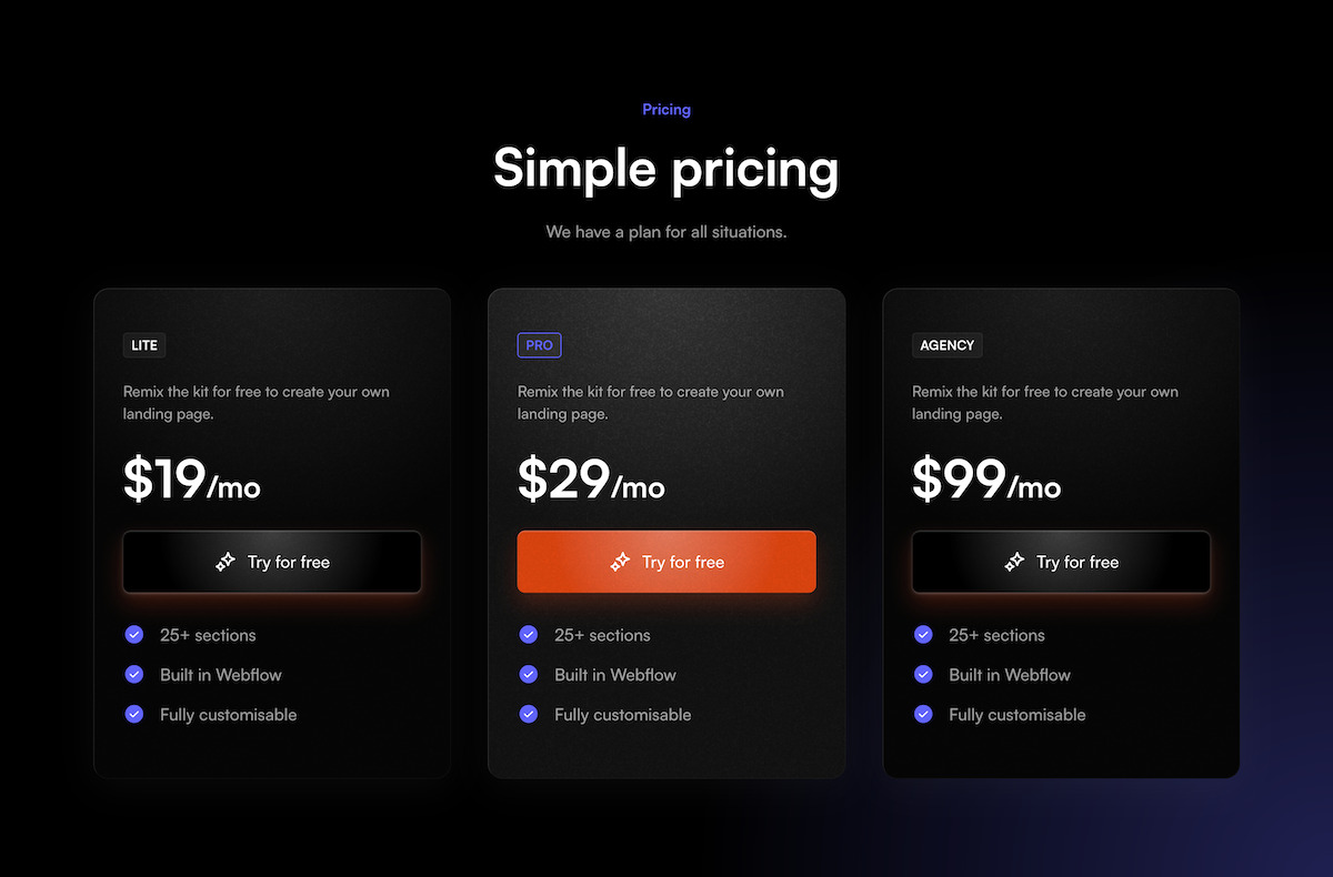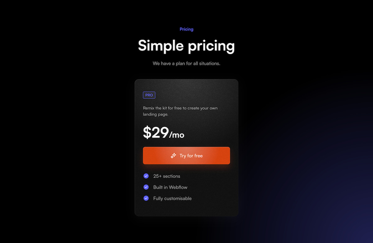 A collection of 30+ Webflow sections to quickly build, launch, & validate your project.