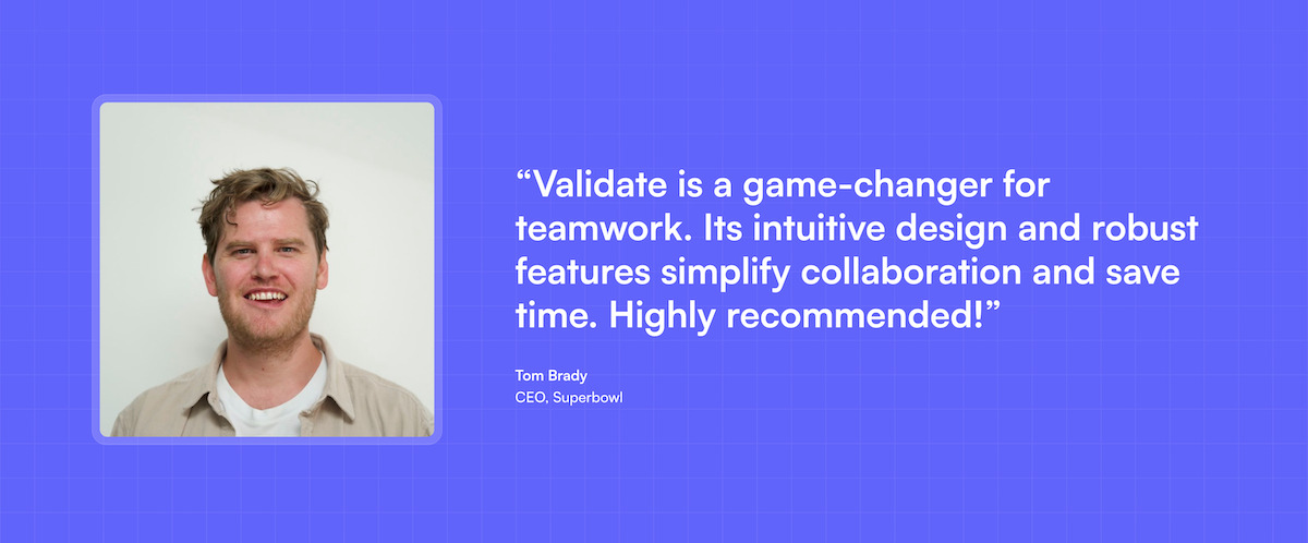 “Validate is a game-changer for teamwork. Its intuitive design and robust features simplify collaboration and save time. Highly recommended!”