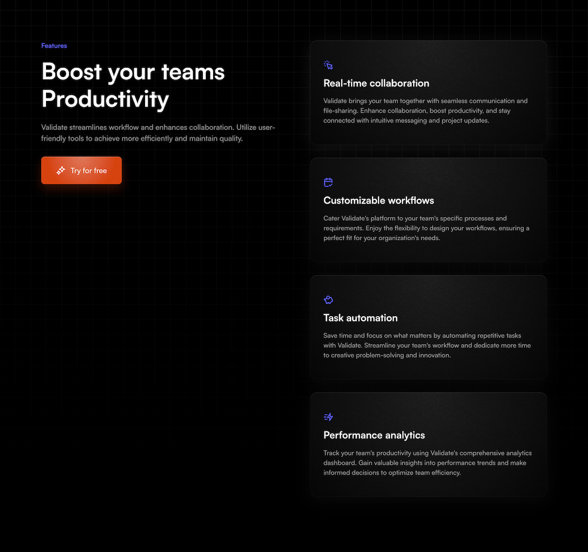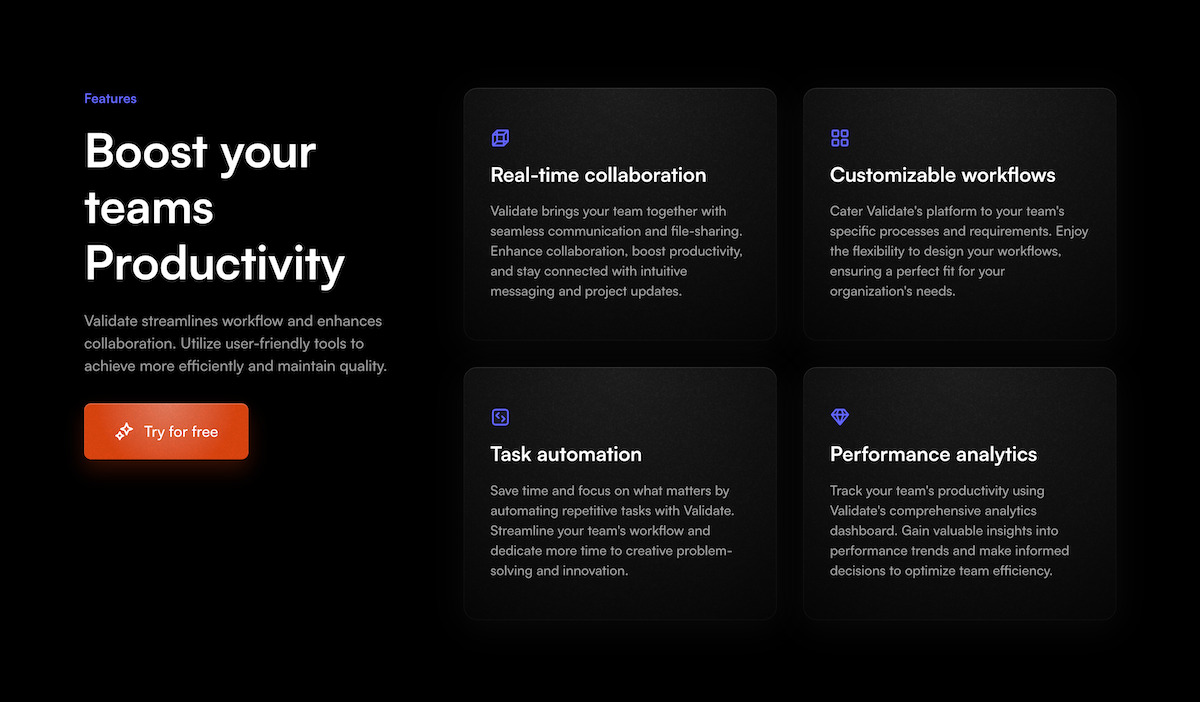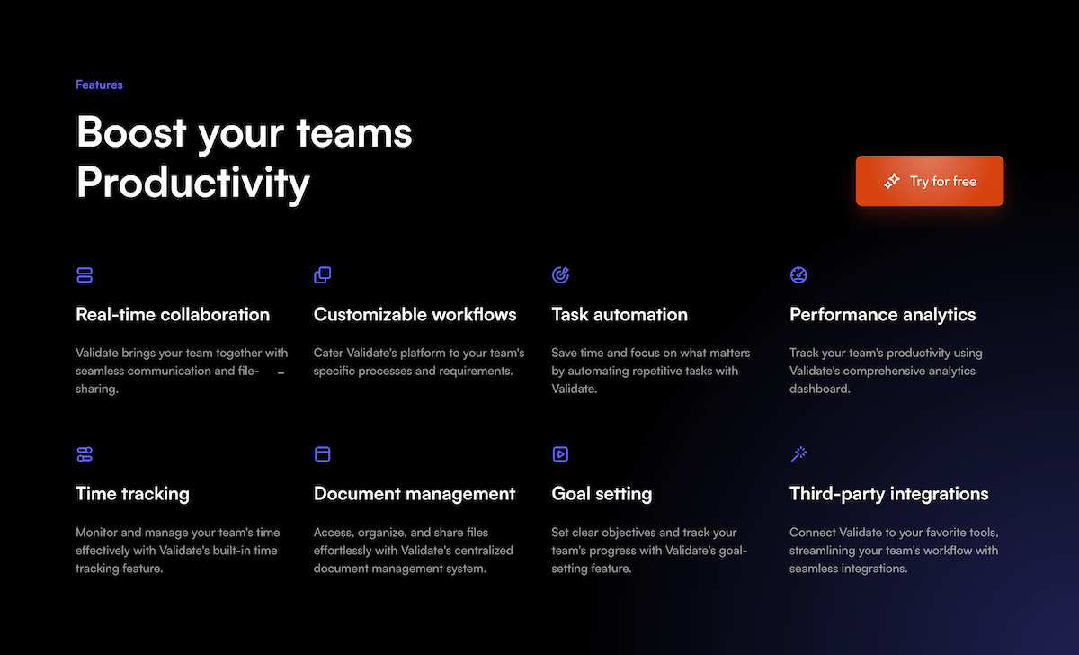“Validate has turbocharged our team's output. Its smart features and seamless user experience revolutionized our collaboration process. We're absolutely thrilled with its impact!”